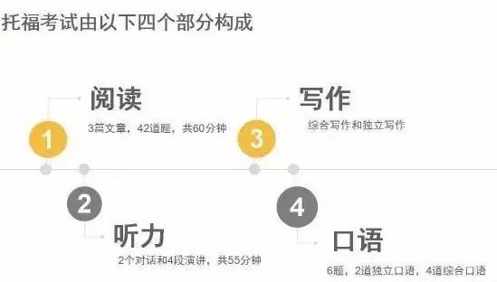 托福和雅思两大考试都分为听力、口语、阅读和写作四部分。