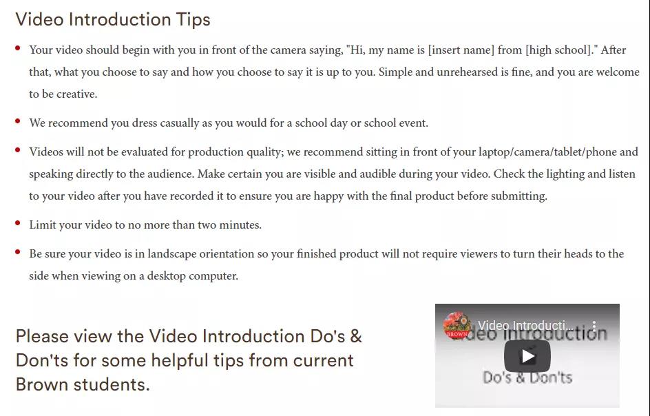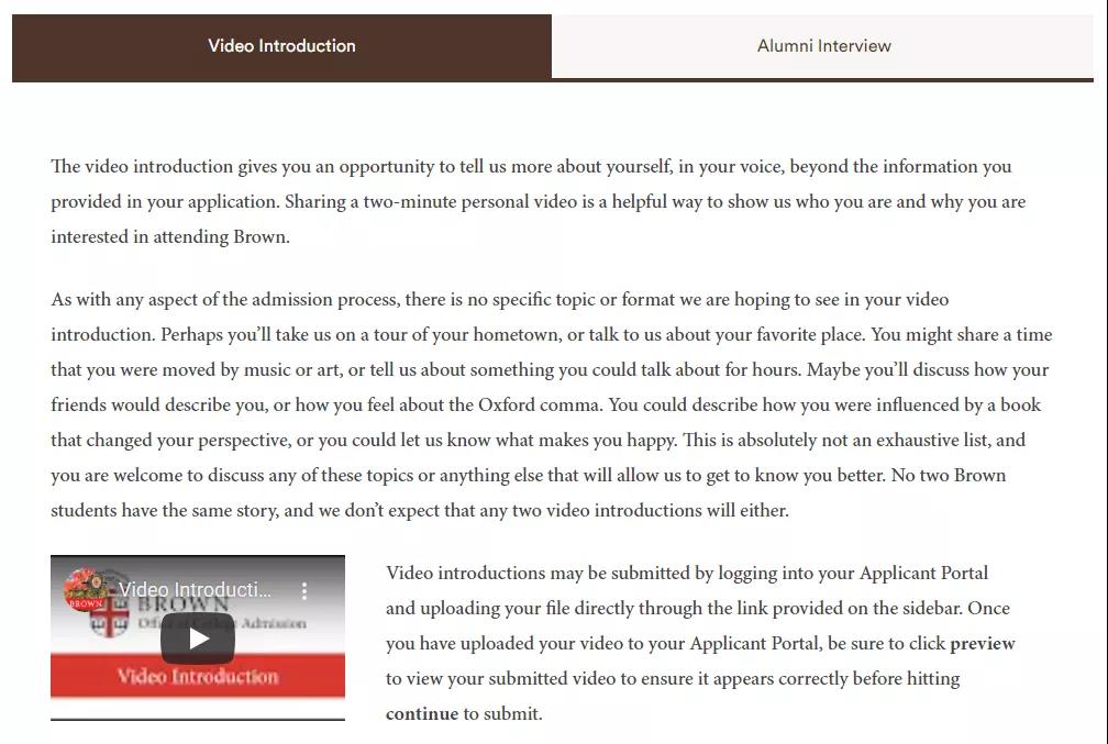 而提交视频则是新兴出现的,如布朗大学就采取了这种方式。