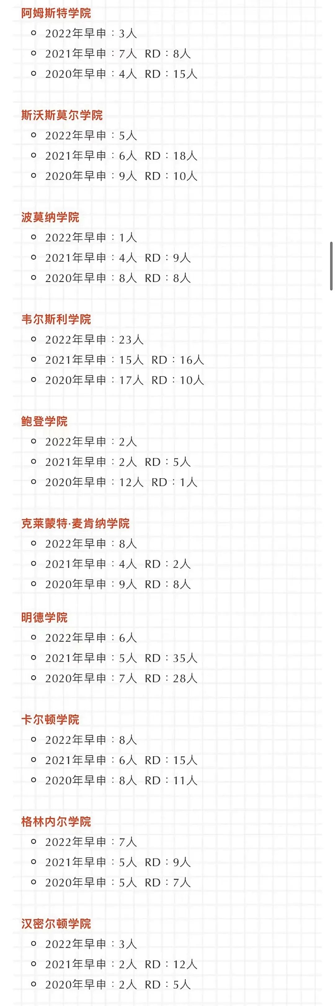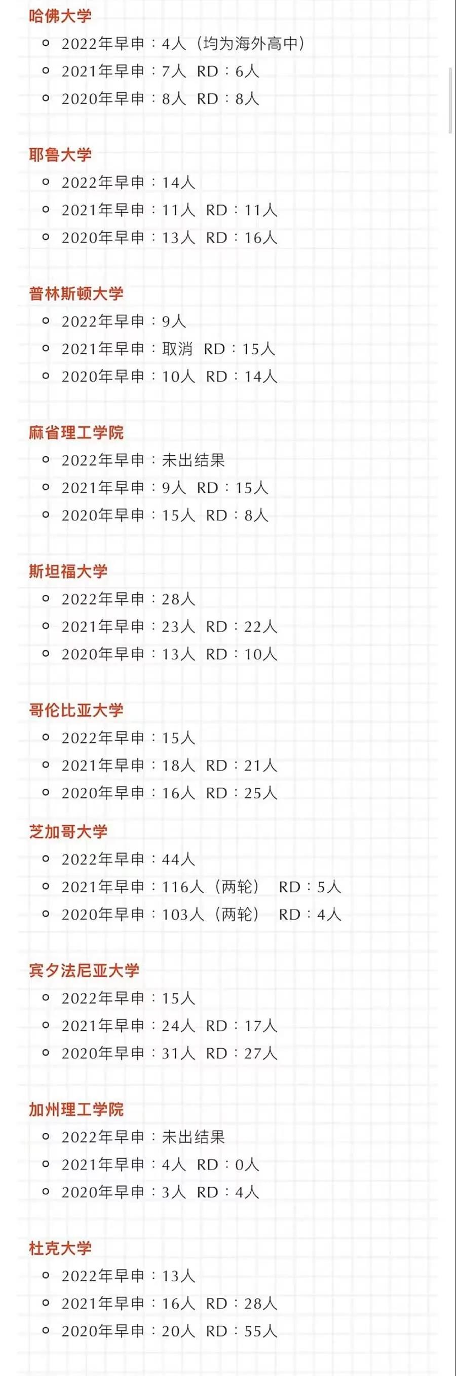 关于RD轮还能录取多少学生,我们不妨回顾一下近三年申请季部分美国顶尖大学及文理学院录取数据。