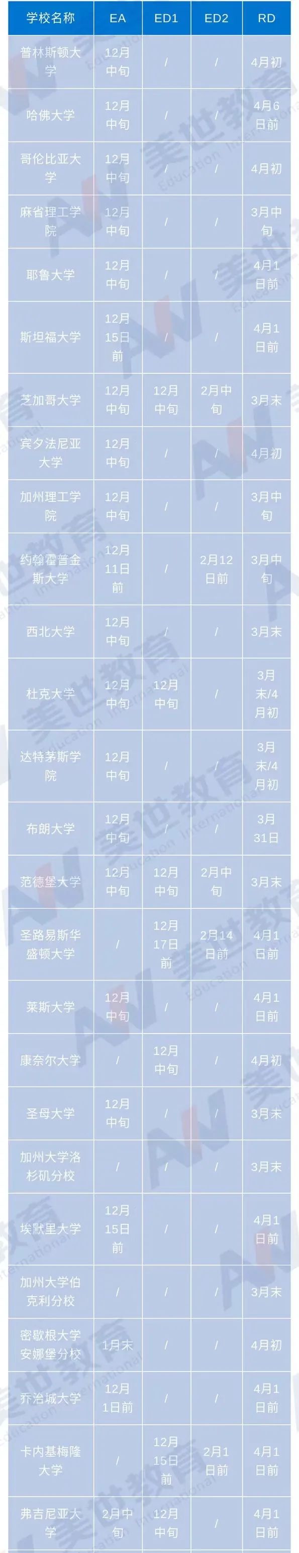 全美TOP50院校具体放榜时间如下:
