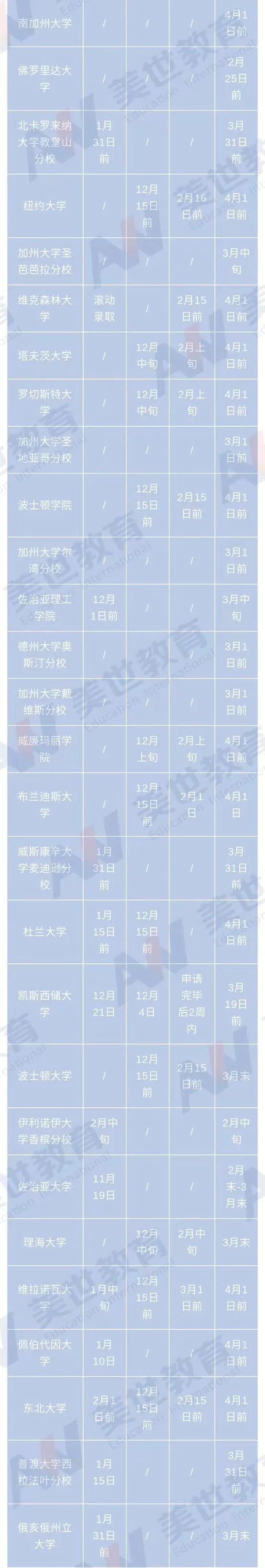 值得注意的是,部分综合性大学EA放榜日期较晚,将在1月中下旬发放录取结果,如:密歇根大学安娜堡分校、北卡罗莱纳大学教堂山分校、威斯康星大学麦迪逊分校等。由于美本高校RD申请阶段截止日期较晚,RD放榜日期普遍集中在3至4月份。PS:大部分文理学院早申政策包含EDⅠ和EDⅡ,放榜时间分别在12月中旬和2月中旬左右。文理学院和综合性大学的RD放榜日期都集中在3至4月份。