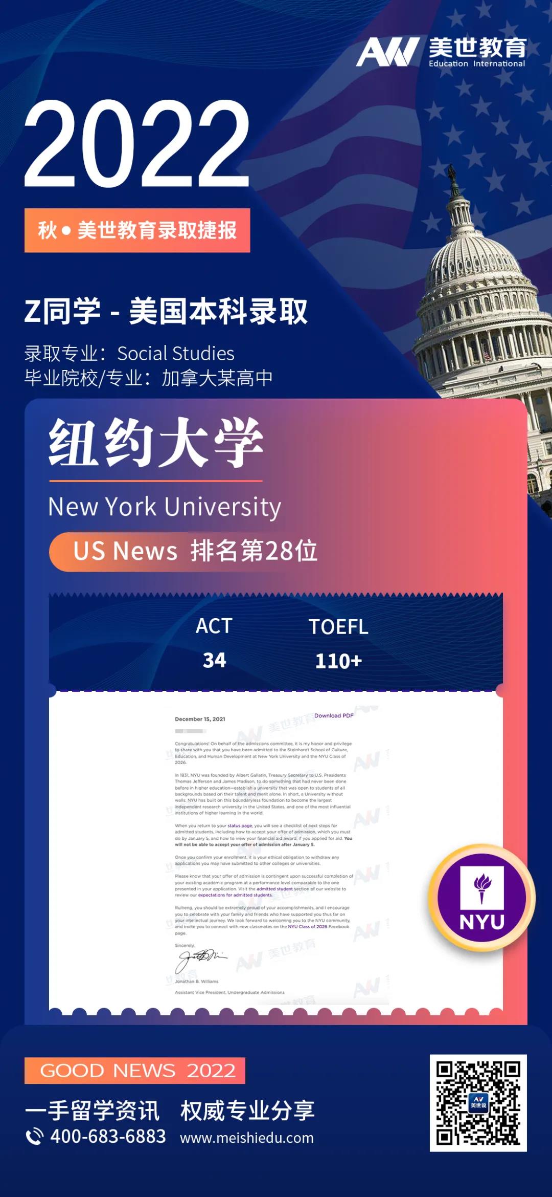 逆势而上,美世学子NYU Offer+5!
