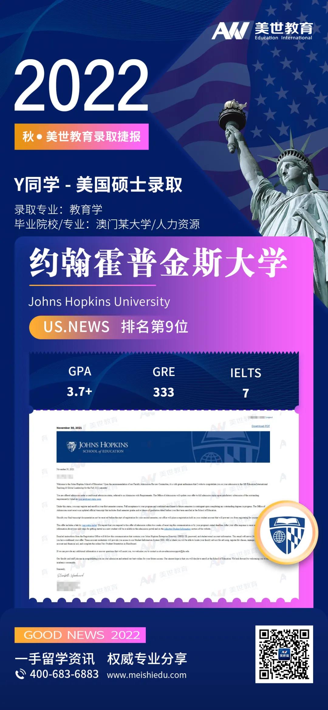 目前,美世学子已陆续收到美国顶尖大学研究生录取,一起来看看他们的战绩吧: