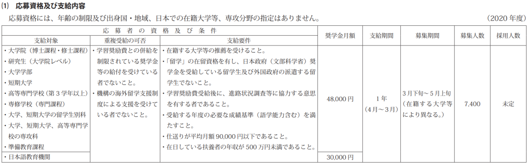 目前,日本留学奖学金大致可以分为以下5种类型: