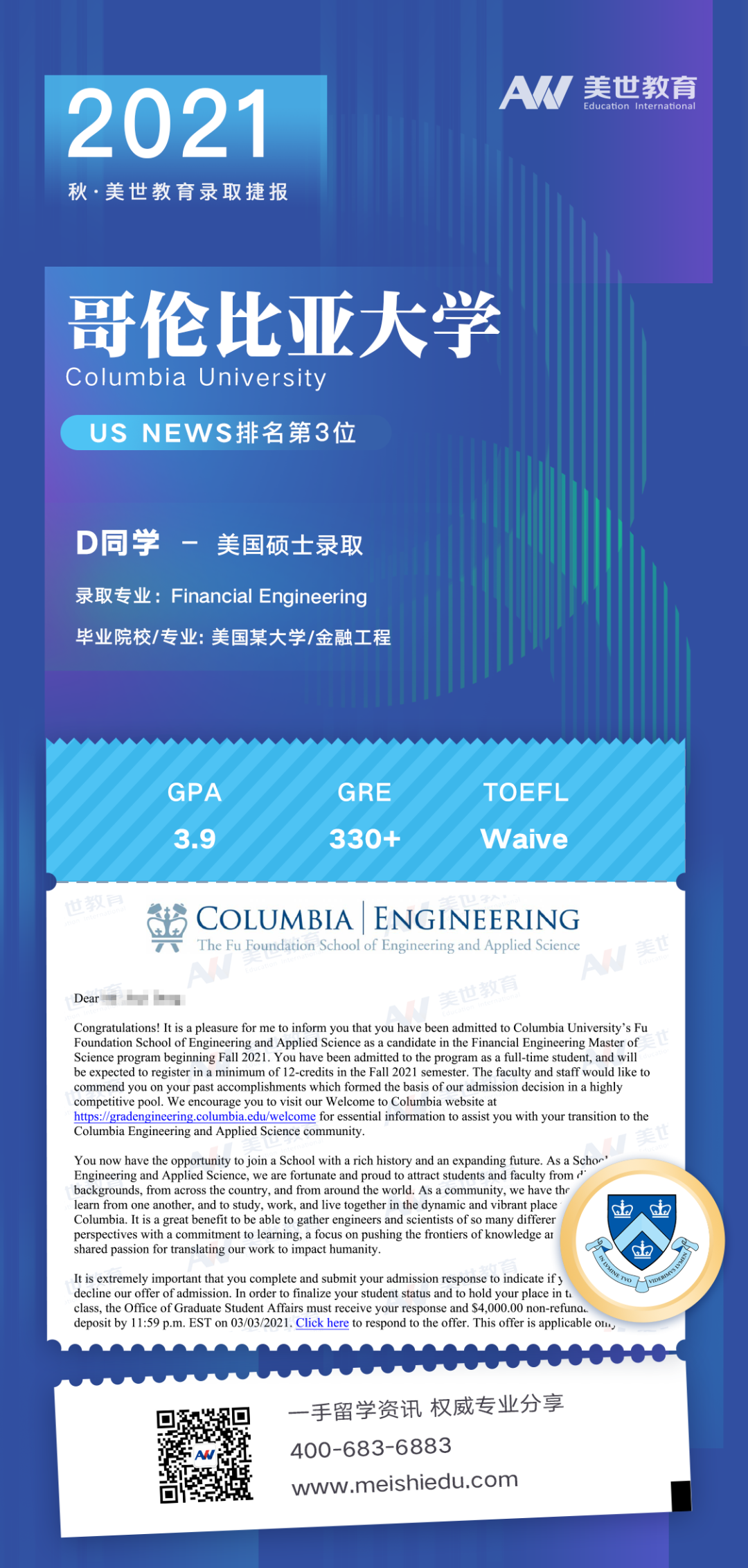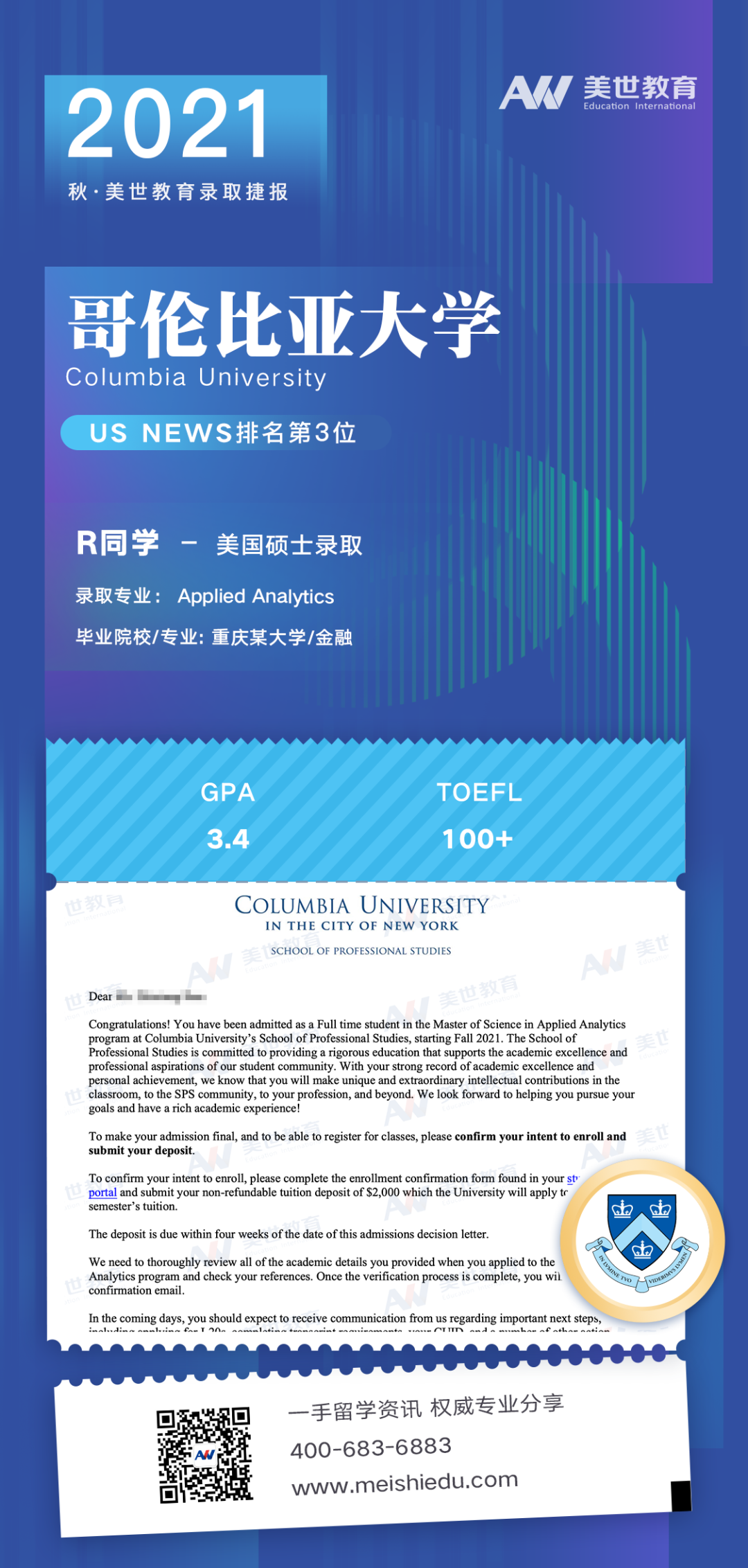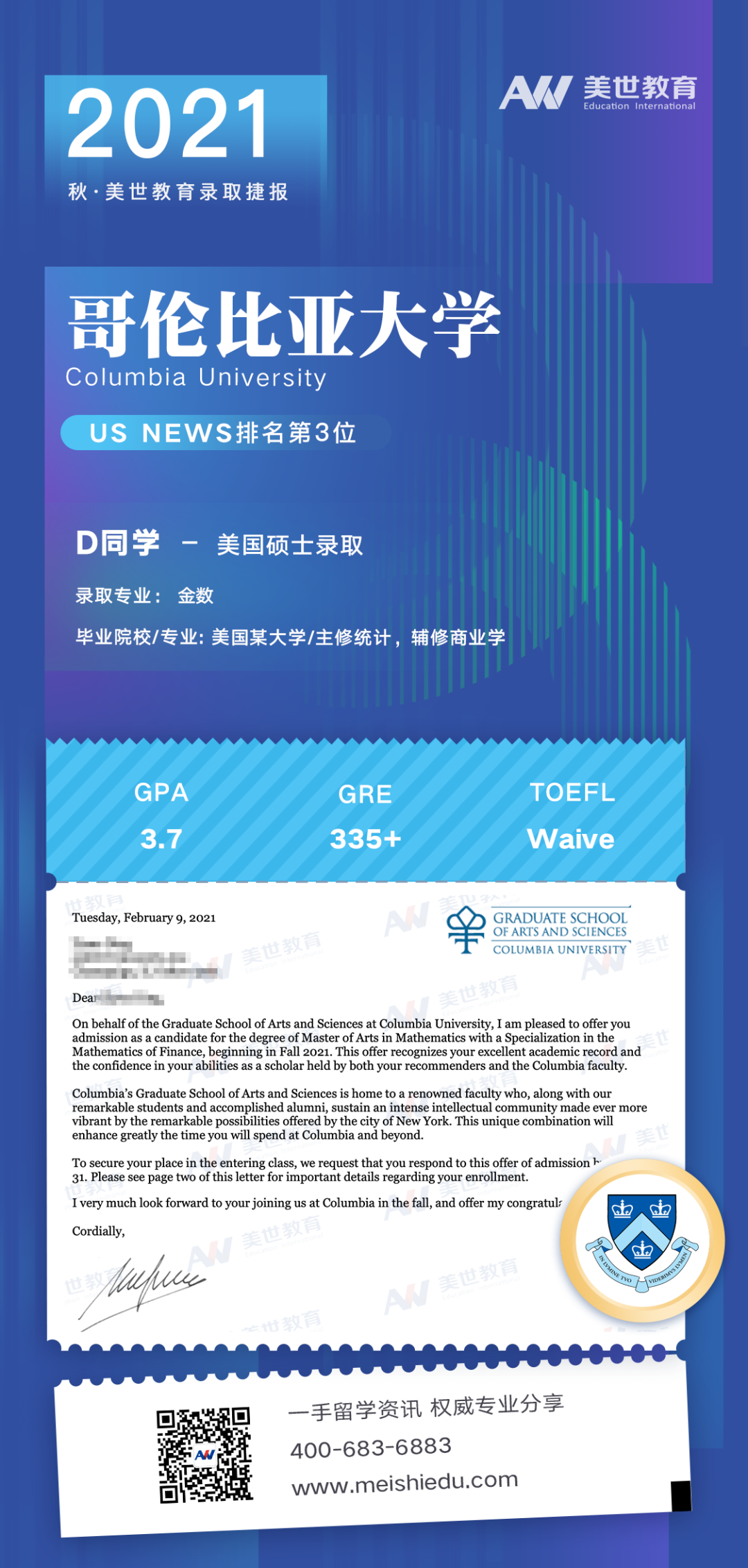 美世教育已帮助众多学子成功申请世界名校offer并以优异成绩完成学业
