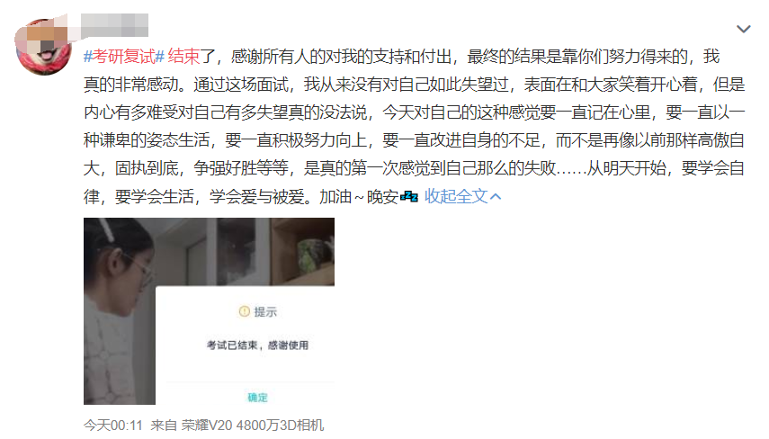 随着各大高校考研复试结果的出炉,不少学生已经收到拟录取的通知了,同学们纷纷在微博表示,我的考研就此结束了。有兴奋、有喜悦、有依别、有不舍。