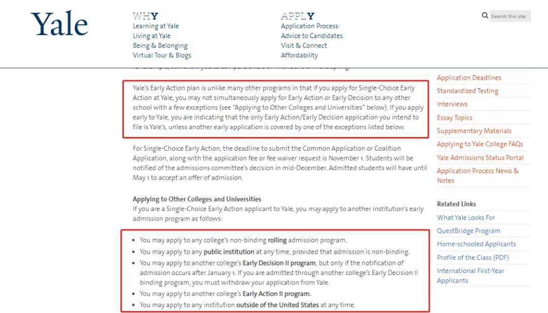 如果申请了耶鲁的SCEA,那么你不能申请除了下述例外情况之外的任何学校的EA或者ED。