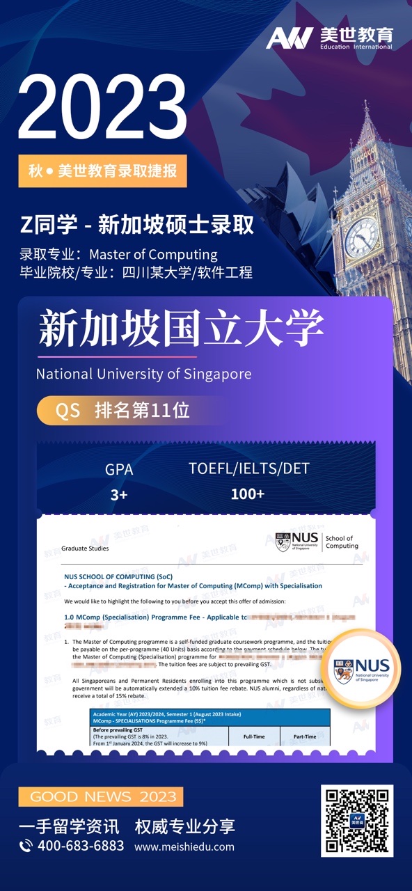 美世捷报 | 恭喜Z同学斩获新加坡国立大学硕士offer